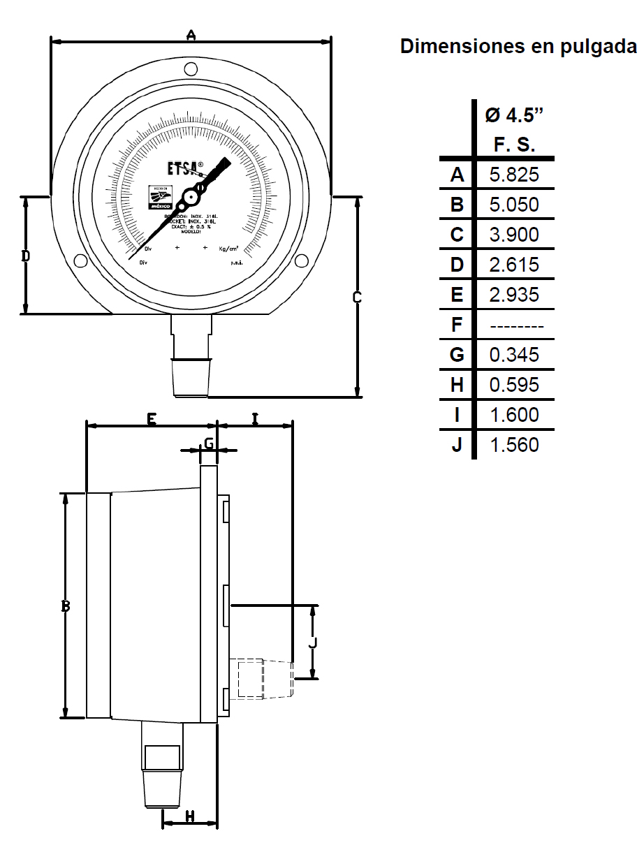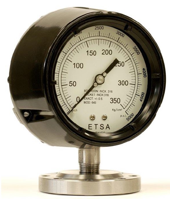 Los manómetros marca ETSA de frente sólido y caja de resina fenólica están especialmente diseñados para aplicaciones con condiciones severas en industrias tales como la química, petroquímica, plataformas marinas y en general en ambientes corrosivos